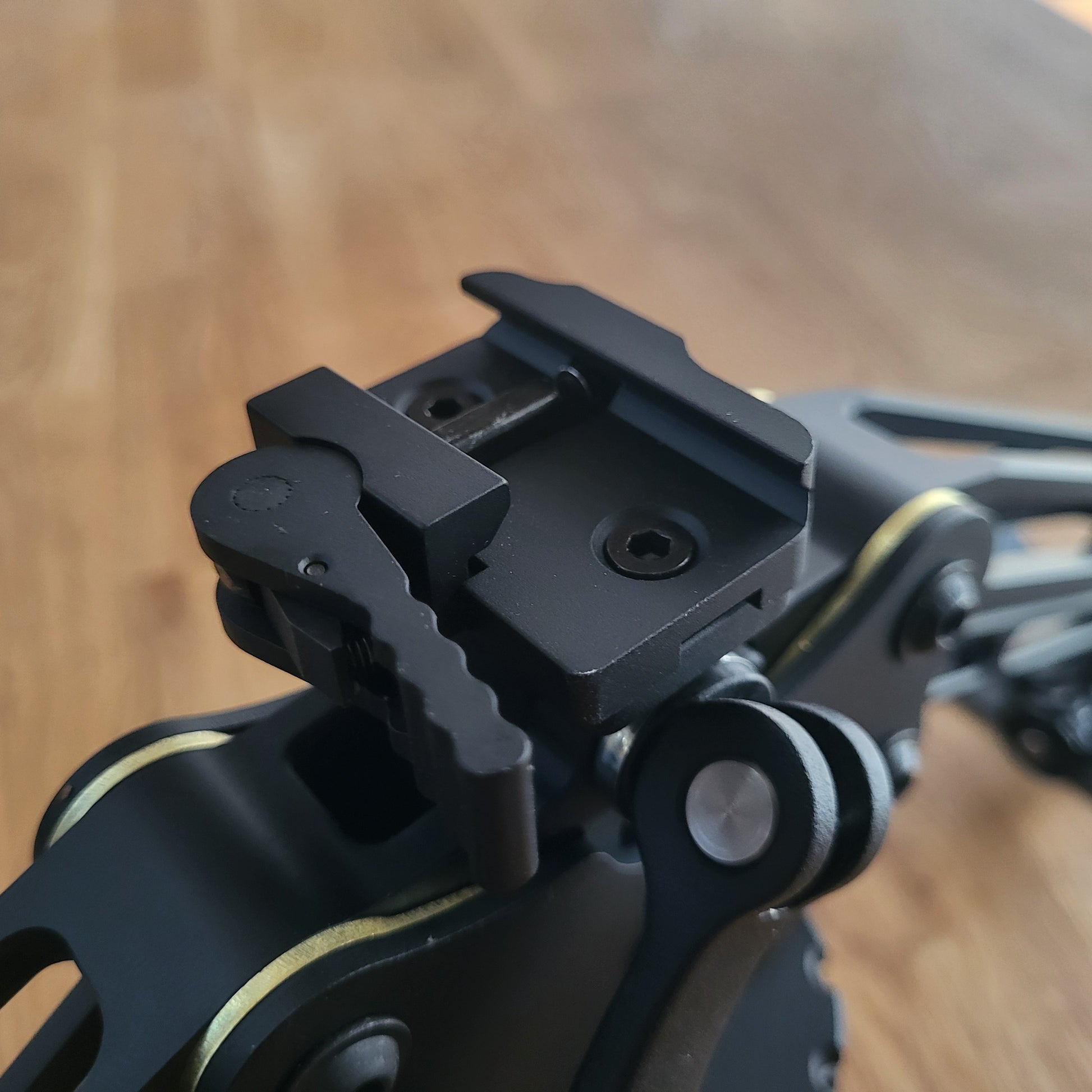 wenniger Breitenverlust beim hoch Stellen, wie vergleichbare Zweibeine. Picatinnymontage bewegt sich mit nach oben und neutralisiert damit auch das Gewindespiel vom Höhenstellrad.